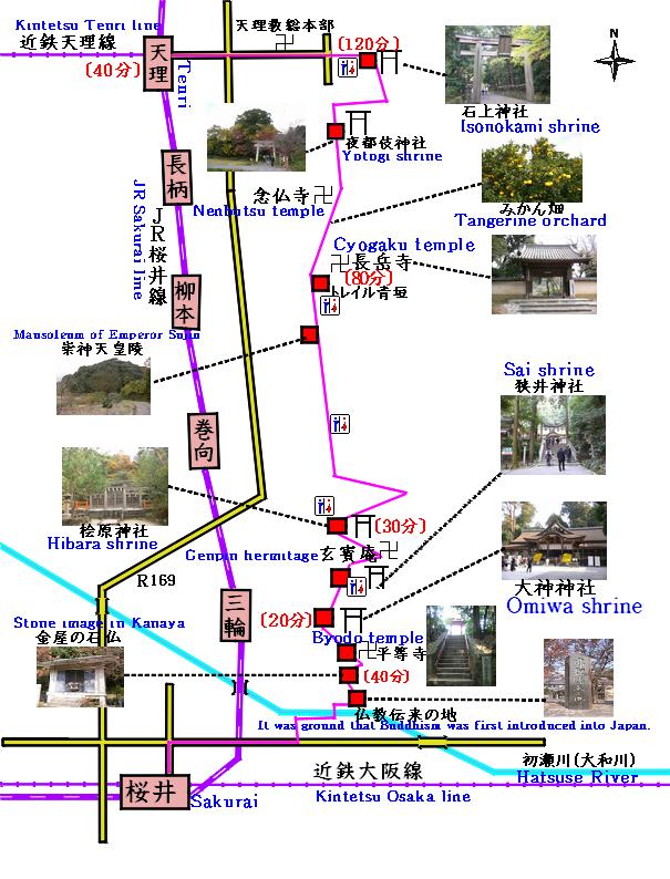 【山の辺の道の地図】