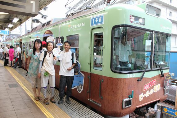 ![]() ![]() 浜大津駅に、ビールde電車が入ってきました