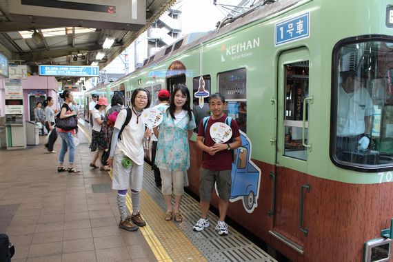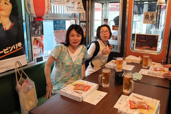 ビールde電車、揃いの団扇