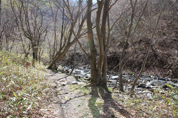 ![]() 沢沿いの道を行くと・・・・・