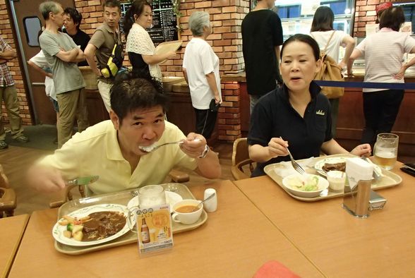 そんなにがつがつ食べなくても・・・・・! 隣の人が、呆れてます!